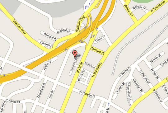 From the 110 Freeway (traveling either north or south) take the Hill St. Chinatown exit. From downtown drive north on Hill St. to Chung King Road, a pedestrian only street parallel to and just west of Hill St. You can park on Hill St. Enter through the plaza at the pedestrian crossing halfway between College and Bernard Streets. There is also a parking lot at each end of Chung King Rd. Driving in from Hill St. (take the first driveway on the right after the 110 exit - $4 / all day parking). The other parking structure is on Bernard Street between Hill St. and Broadway.